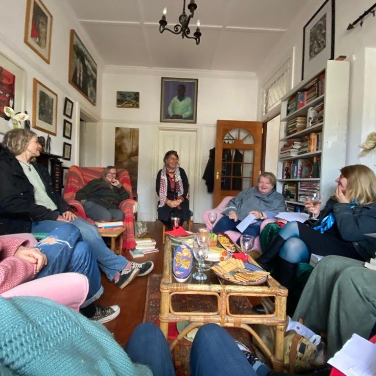 It is good to praise good nourishing things which we could take for granted... they go on for years and years, book clubs. I miss mine in SA, but stay connected to most of the members. I am interested in how here book clubs seem to read the same book and discuss it quite seriously; in SA we had a turn to buy and share and recommend a book and each took and read different ones... on the evenings we met the books were often secondary to the catch-ups and the connections, but I was always grateful to be surrounded by books, and be able to choose several to take home. Even if they did often sit unread at my bedside, I still felt connected to the world of books and reading. And probably would never have got as close to books in busy parenting years if not for the club which meant we brought the books TO each other.