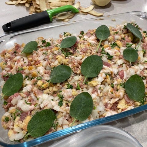 At Thanksgiving, I searched for uncooked sausages for my stuffing. Nothing. There was no sausage skin I could slit with my pointed knife. I bought stuffing mix from the butcher. It was mainly bacon.