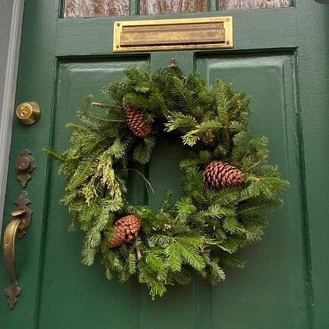 Seasonal wreaths for your front door are massive here. In Spring, the wreaths are celebrations of pastel-bright blooms. At the start of Autumn, there are rings of yellow, orange and red leaves (and pumpkins lining the steps). In December, the holiday wreaths are like Christmas trees: curves of evergreen foliage, deep-red berries, acorns, pinecones and plaid bows.