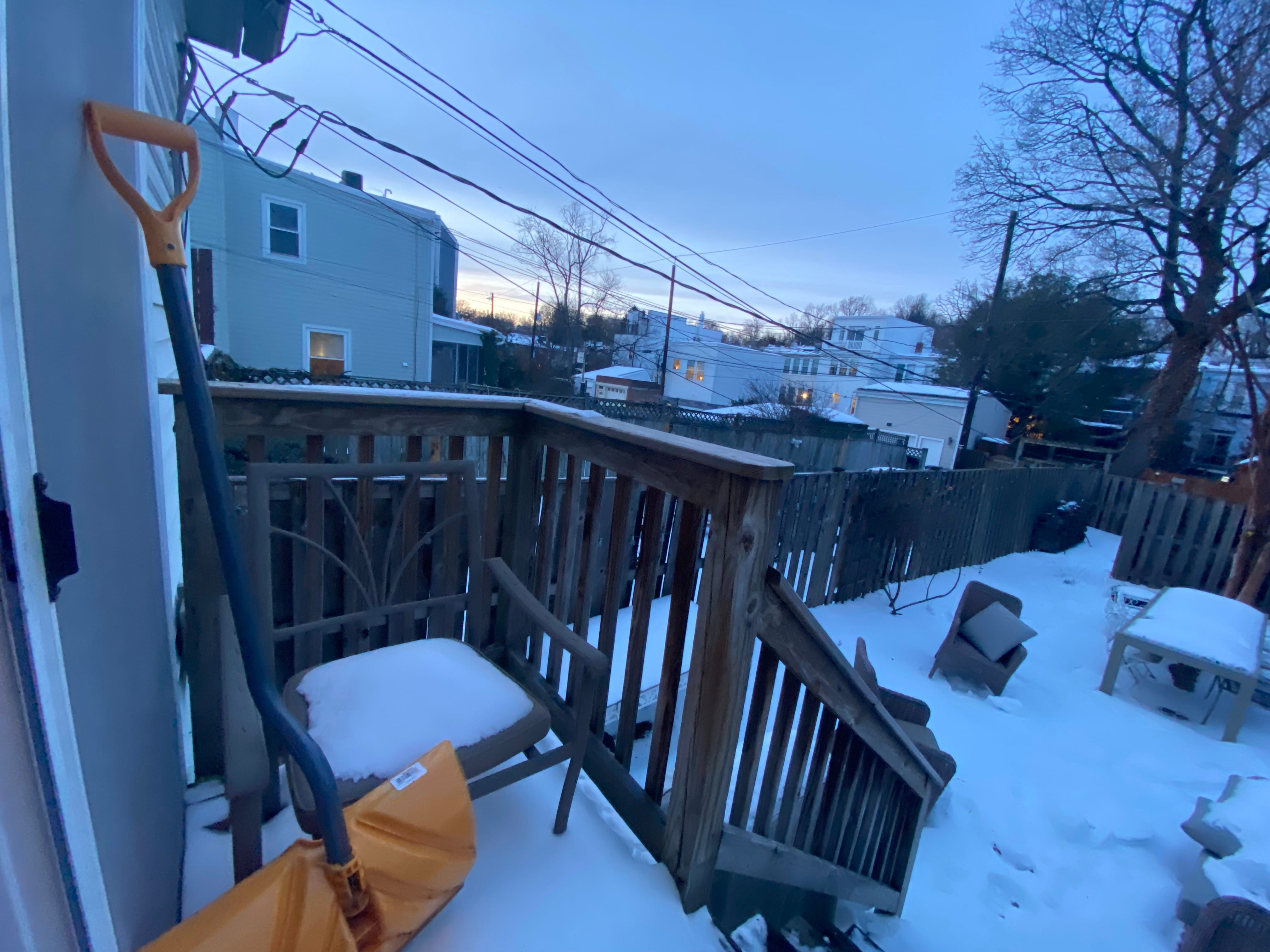 Dave’s work trip was postponed but planes are flying again. Before his Uber arrived, he and Sam took the shovel out.
