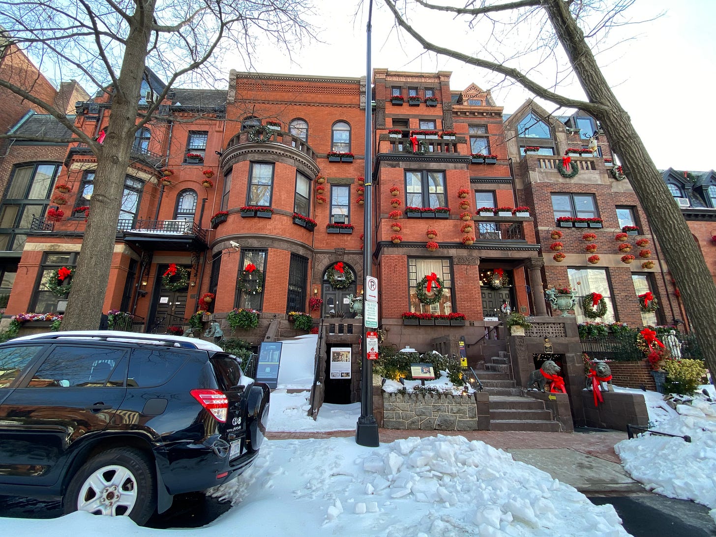 This was Sam’s first day of his new internship. It involved a lot of driving. Every two-way street is currently no wider than a one-way. It’s like driving in Cornwall, or in Kalk Bay in December. When a car approaches from the opposite direction you pull to the side where you can. Today, I drove into several piles of mucky slush.