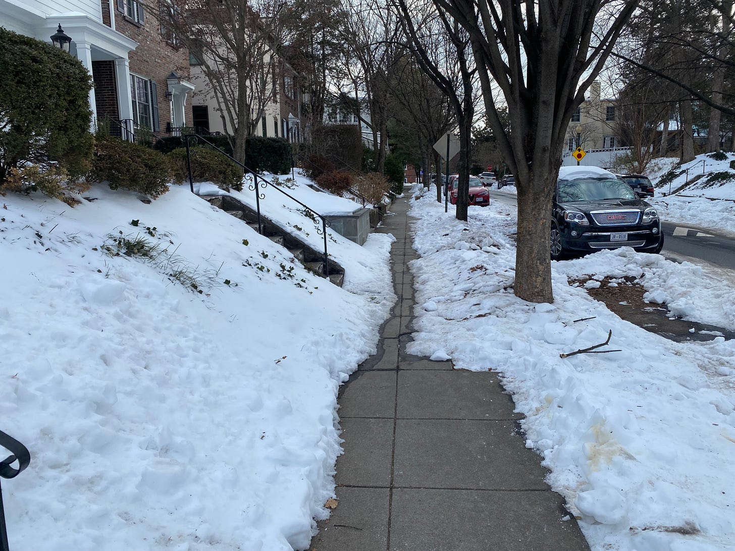 I’m embarrassed to leave the house. It’s the indisputable duty of every resident to keep clear the section of pavement (‘sidewalk’) directly in front of their home.