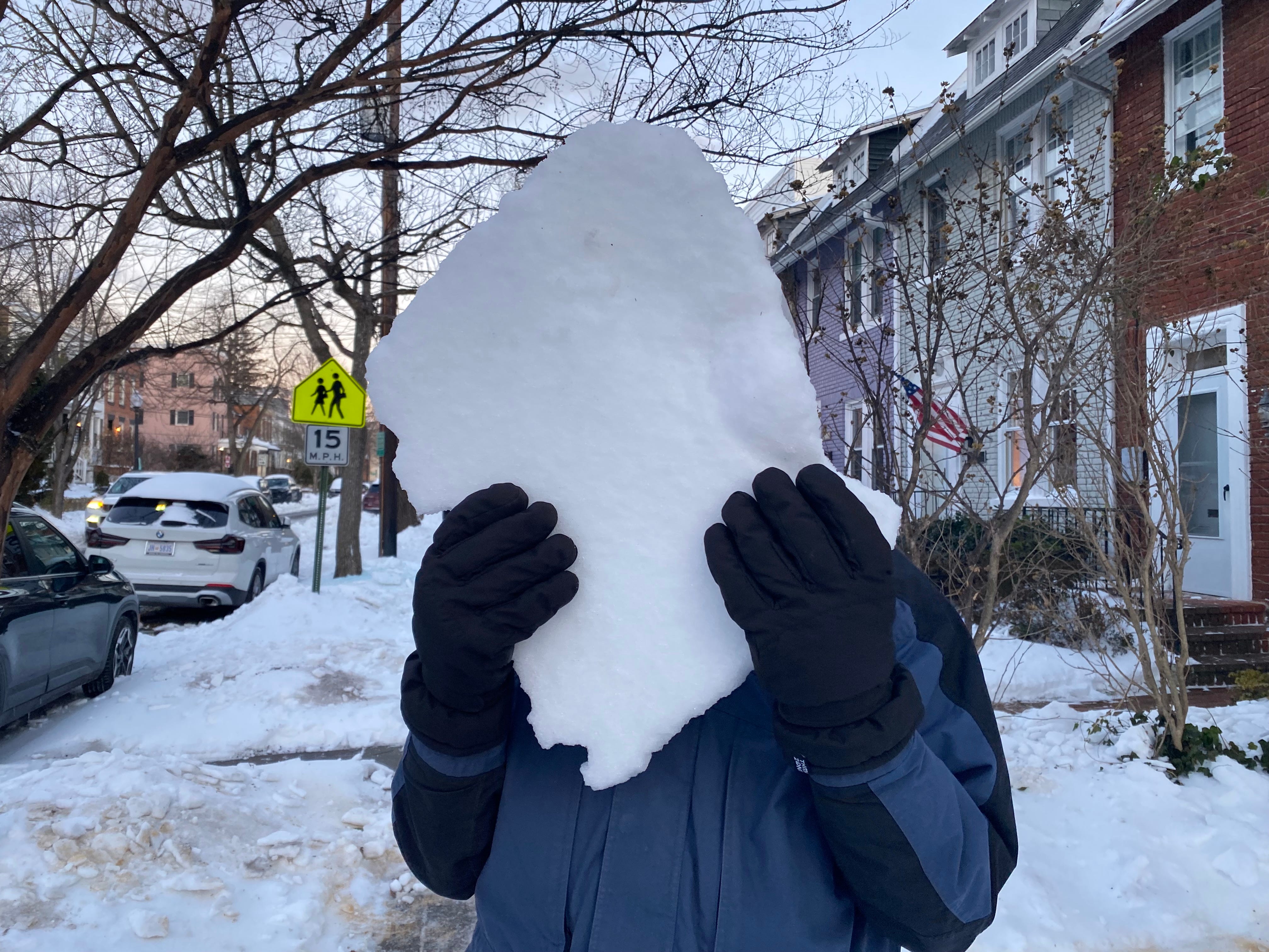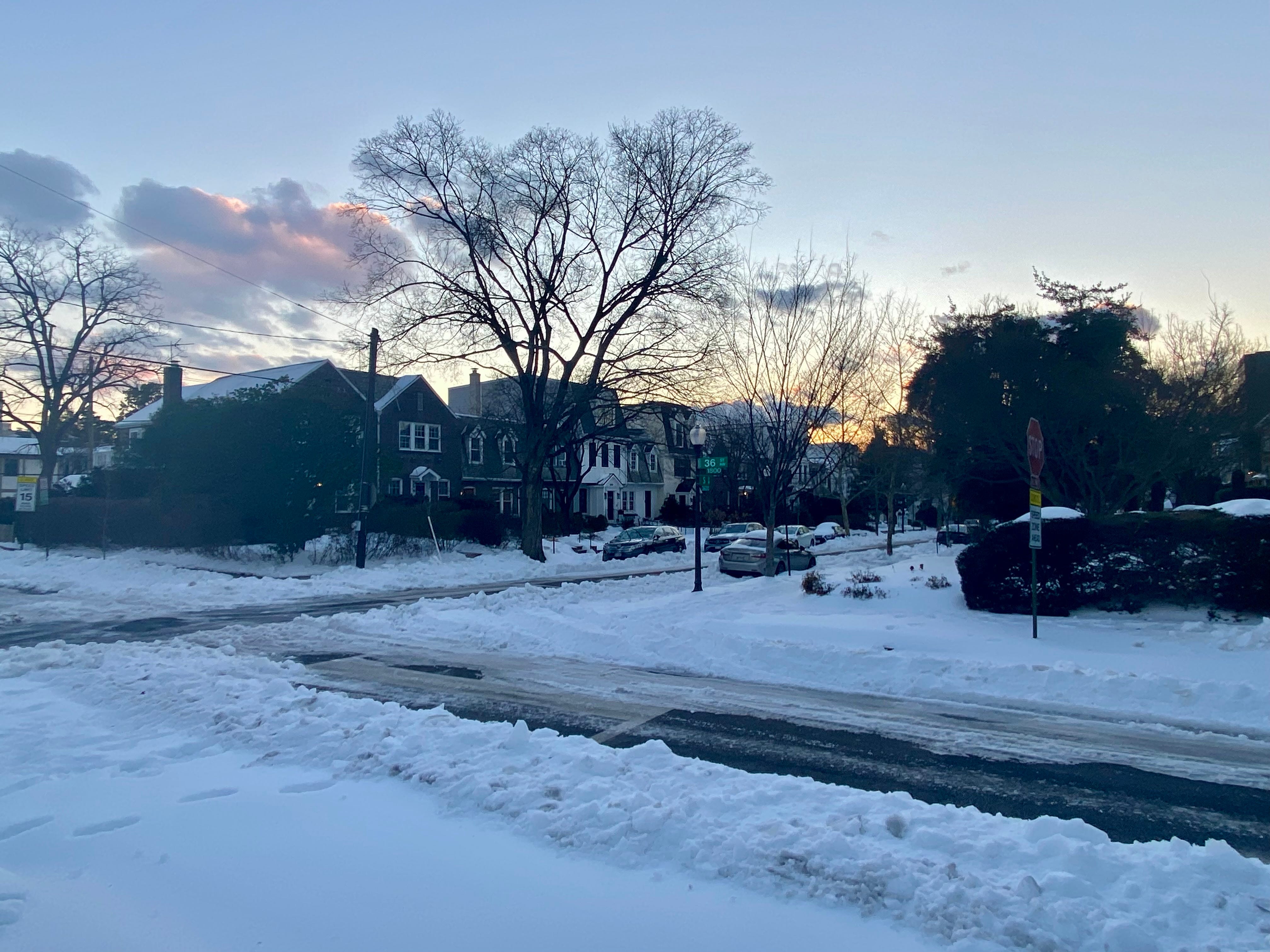 Snow melts in the day and re-freezes at night. When it’s this cold, the snow and ice just sticks around. In Canada and the mid-West, there are city trucks that suck up the snow and take it away on trucks. But Washington DC doesn’t usually have a snow problem in winter. Some winters it doesn’t snow at all.