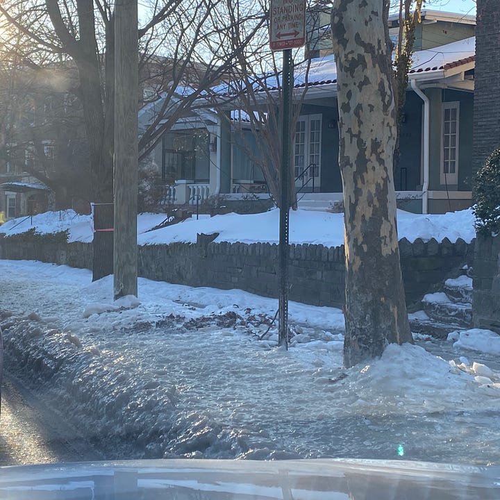 I saw a video of someone running across the Potomac, somewhere between the Georgetown Waterfront and the Watergate Hotel. In the video you could hear the dunk-dunk of the runner’s feet on the iced-over river. It was surreal.