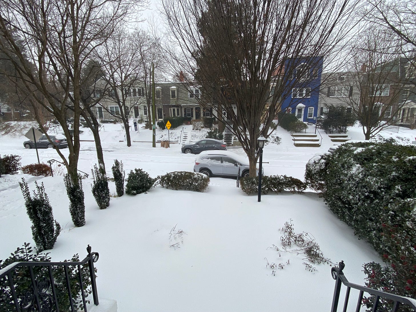 “The air has a burn to it too. Of course it does. But again, it surprised me. Twice during the snow we walked on the National Mall. It was so cold my face became slightly numb. I mispronounced some words.